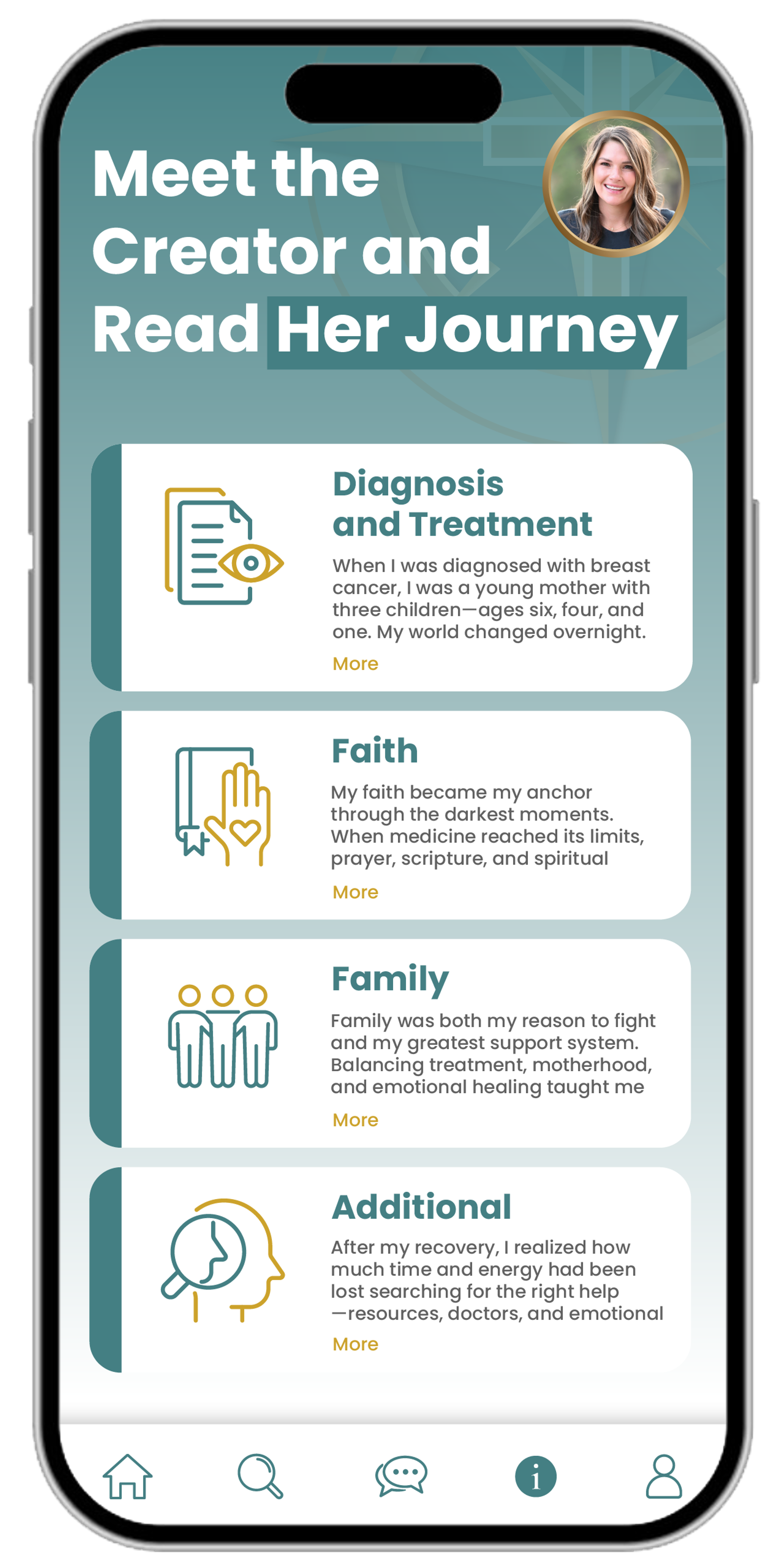 “As a breast cancer survivor and mom of three, I know firsthand the fear and overwhelm that come with a cancer diagnosis. I created Cancer’s Compass to take away some of that burden — connecting patients and families with trusted resources, community, and faith-based encouragement. So you can focus on what matters most: your healing and your family.”